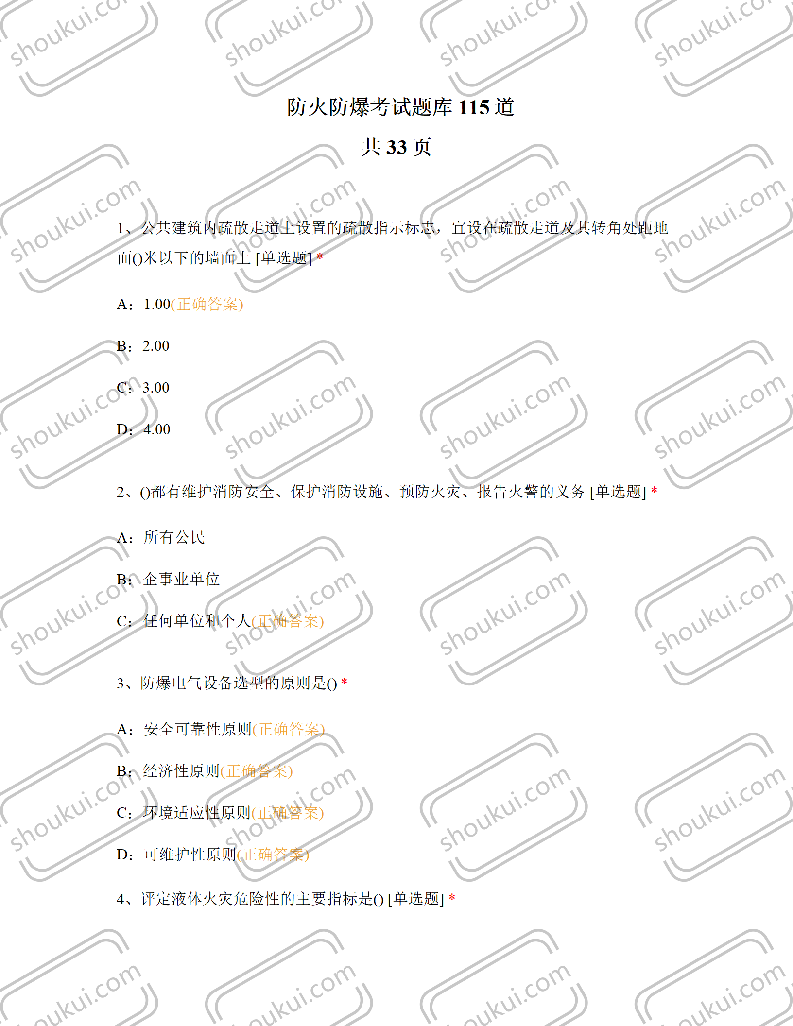 当前位置: 首页知识竞赛消防安全正文 防火防爆考试题库115道共33页 本页内容仅展示部分,更多内容请下载后查阅 声明:本站所有内容,均由网友上传提供。如若本站内容侵犯了原著者的合法权益,可联系我们QQ/微信:706448591 进行处理。 首魁网用户供稿普通 收藏 海报 链接