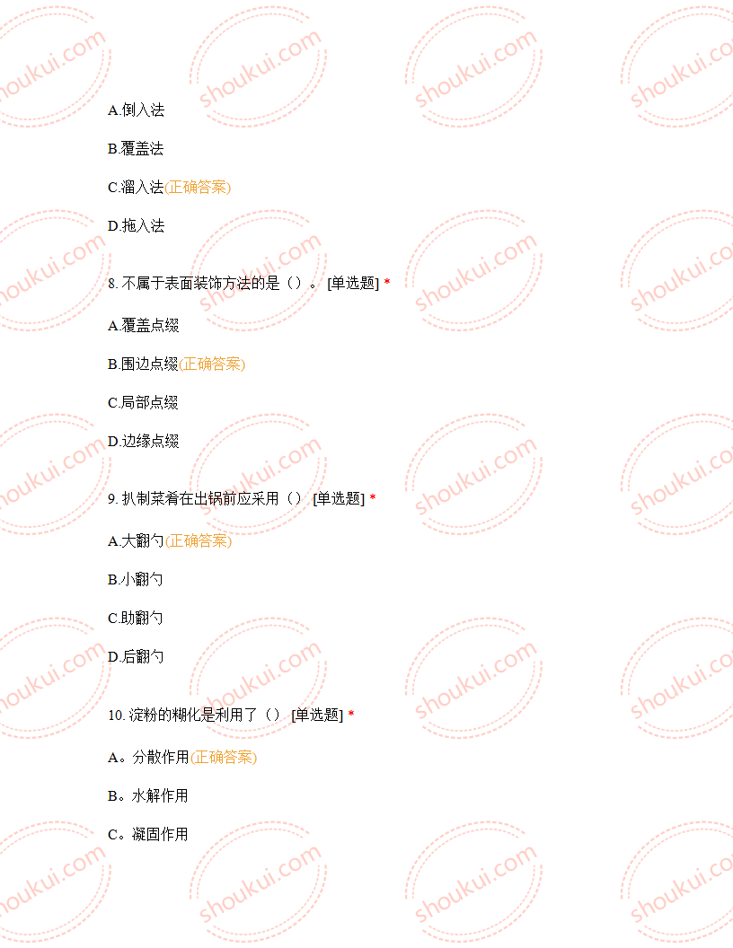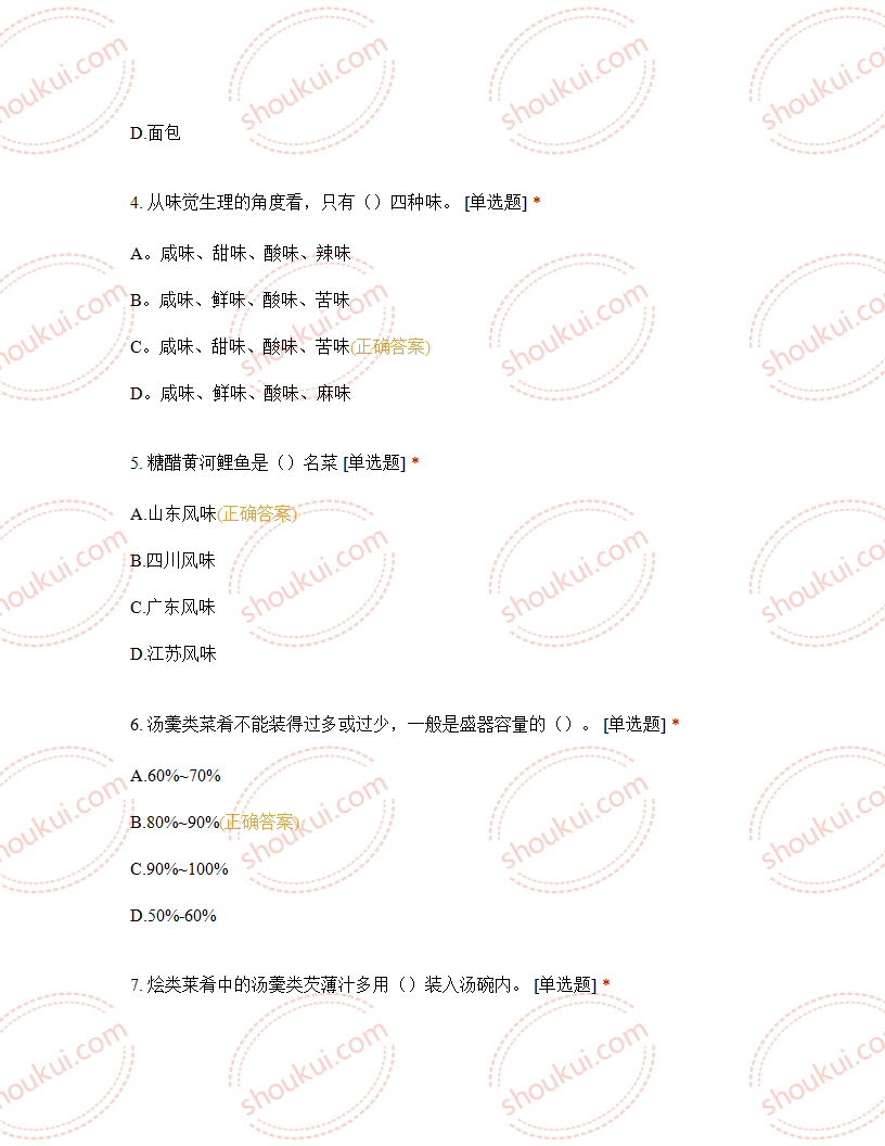 当前位置: 首页招聘考试食品安全考试正文 2021高考班中式烹饪理论考试题100道 本页内容仅展示部分,更多内容请下载后查阅 声明:本站所有内容,均由网友上传提供。如若本站内容侵犯了原著者的合法权益,可联系我们QQ/微信:706448591 进行处理。 首魁网用户供稿普通 收藏 海报 链接