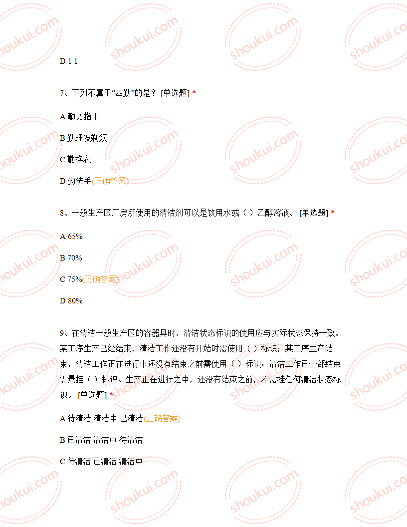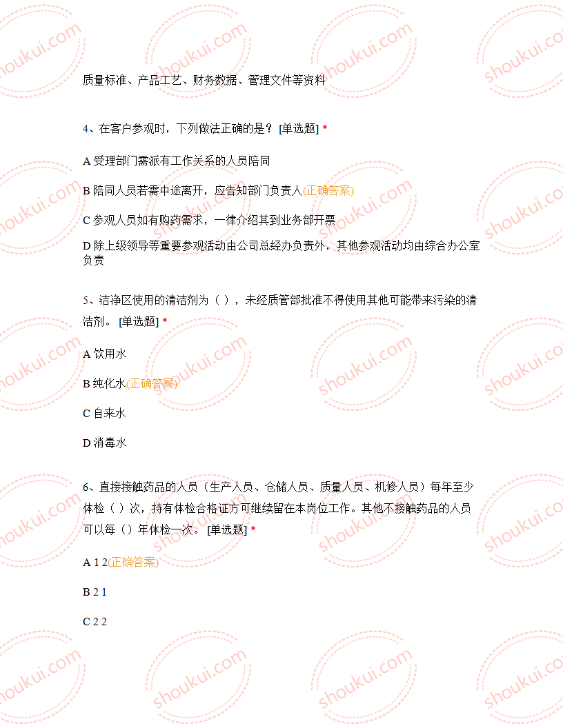 当前位置: 首页招聘考试医护考试正文 药品生产质量管理规范GMP考试题库 本页内容仅展示部分,更多内容请下载后查阅 声明:本站所有内容,均由网友上传提供。如若本站内容侵犯了原著者的合法权益,可联系我们QQ/微信:706448591 进行处理。 首魁网用户供稿普通 收藏 海报 链接